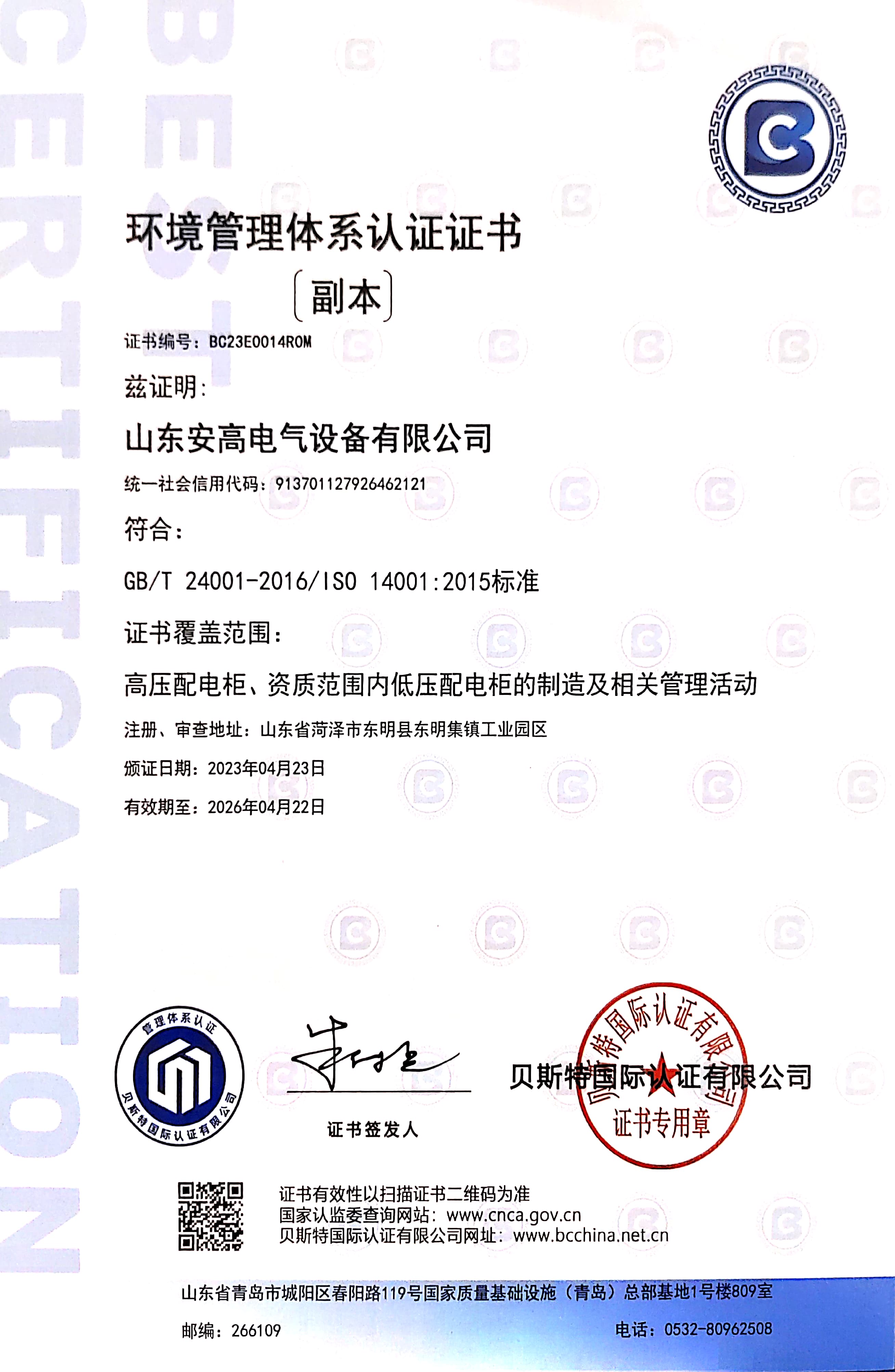 • 環境管理體系認證